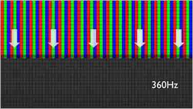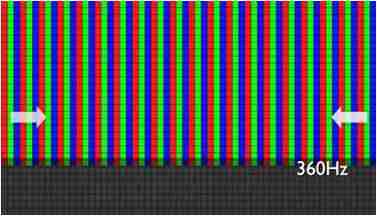 传统液晶驱动是从左到右单向进行,,在画面更新速度愈来越愈快的情况下,,位于驱动线路末端的右下角区域,,画素的闸极来不及在短时间内获得足够电压,,无法显示出正确的颜色资讯。。。 |